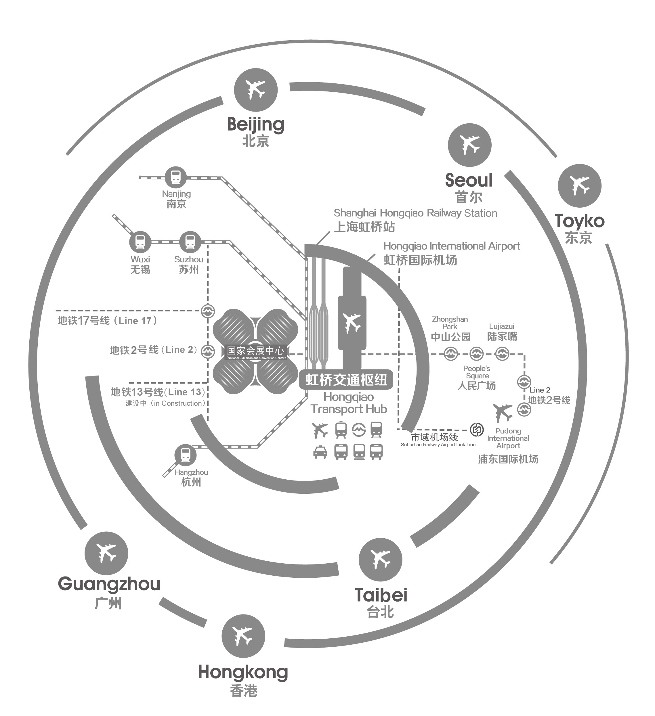 地铁2号线直达展馆内部,是连结上海东西交通的大动脉,便捷连通上海各大核心商圈,连接起上海东侧的上海虹桥国际机场(虹桥二号航站楼站)和上海浦东国际机场(浦东国际机场站)两大机场