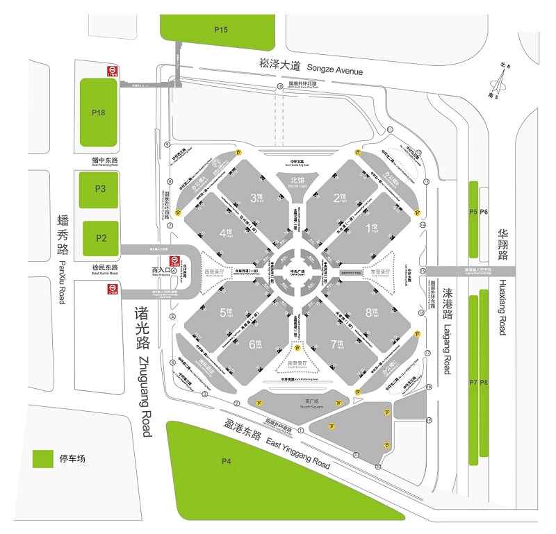 (1)延安高架、南部外环高速方向,嘉闵高架-建虹高架-盈港东路-2号停车场(盈港东路北侧靠近诸光路),或盈港东路-诸光路-崧泽大道(国家会展中心北门)-北展场指定位置停车;